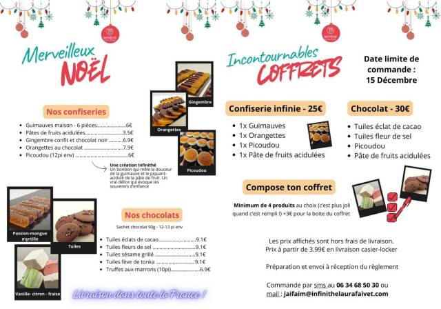 Les commandes sont ouvertes ! Le flyer de Noël — avec tous les produits, tarifs et la date limite de commande — est disponible juste ici sur le site et sur mes réseaux. 🎁 Penses à commander tôt : les quantités sont limitées.